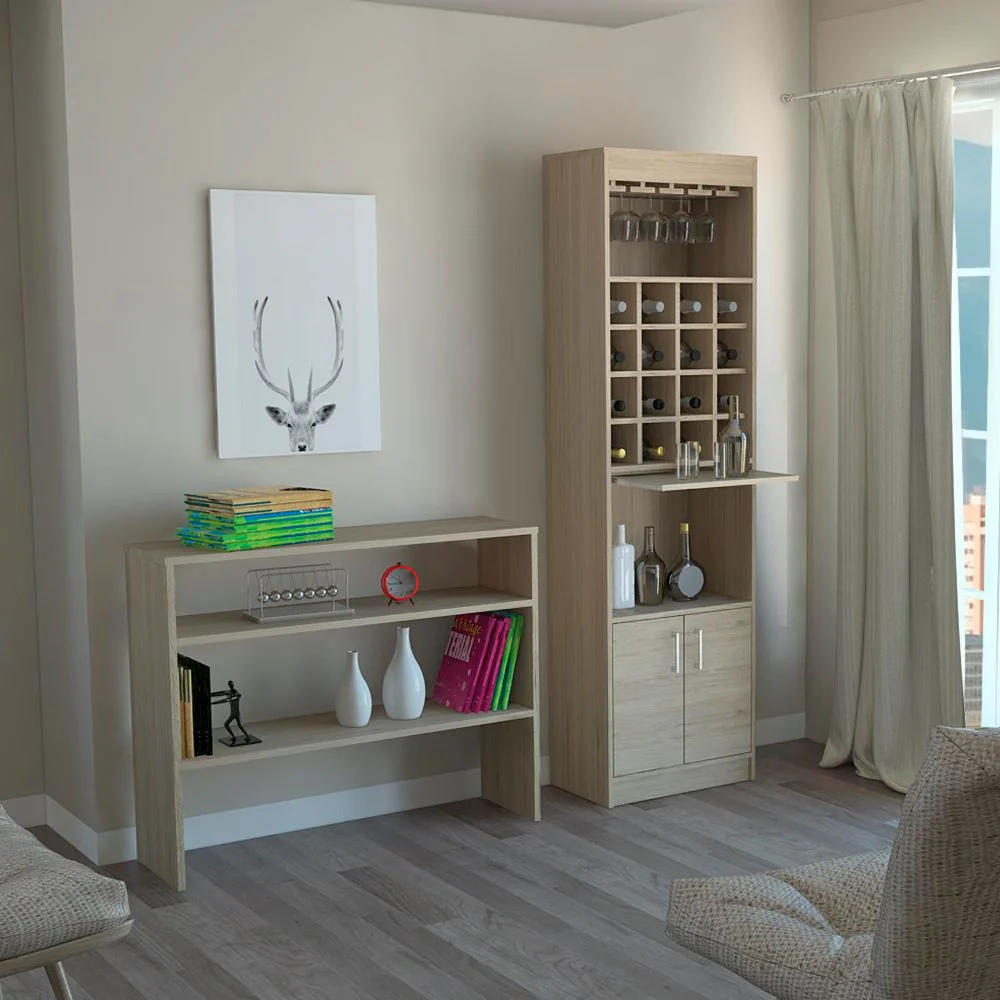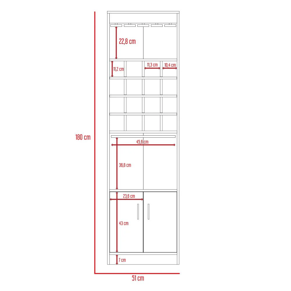 Bar, con 2 puertas batientes, 1 puerta de vidrio, 8 botelleros y copero incorporado.