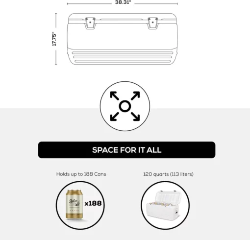• Capacidad: 120 Qt. / 113.56 L / 188 Latas