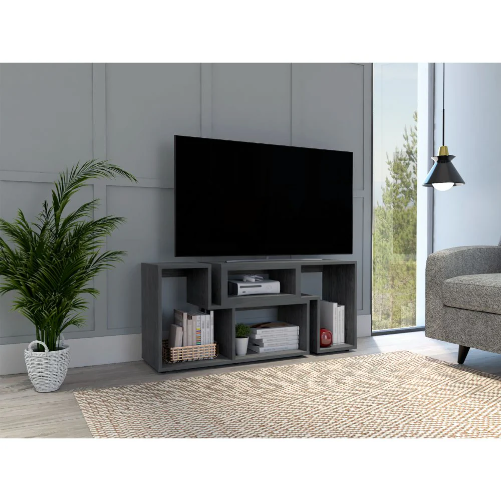 Mesa para TV, con diseño moderno y funcional, rack extensible para colocar objetos de audio y video, tamaño variable en el ancho, compartimiento central de diseño moderno, espacio de TV de hasta 50″