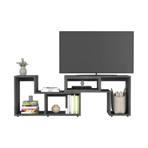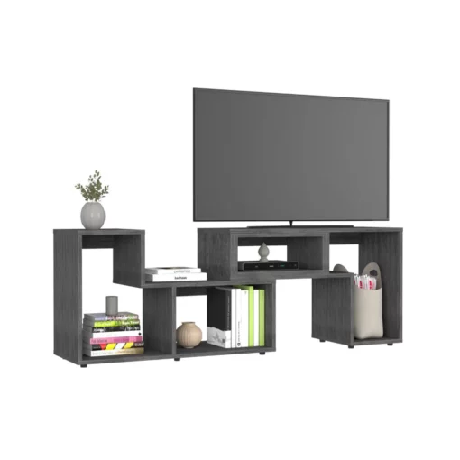 Mesa para TV, con diseño moderno y funcional, rack extensible para colocar objetos de audio y video, tamaño variable en el ancho, compartimiento central de diseño moderno, espacio de TV de hasta 50″