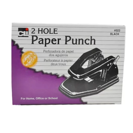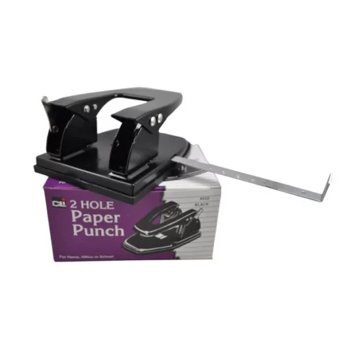 Perforadora de 2 agujeros de 6 mm cada uno, perfora 25 hojas en un sólo corte, separación de 6 cm entre orificio y orificio,