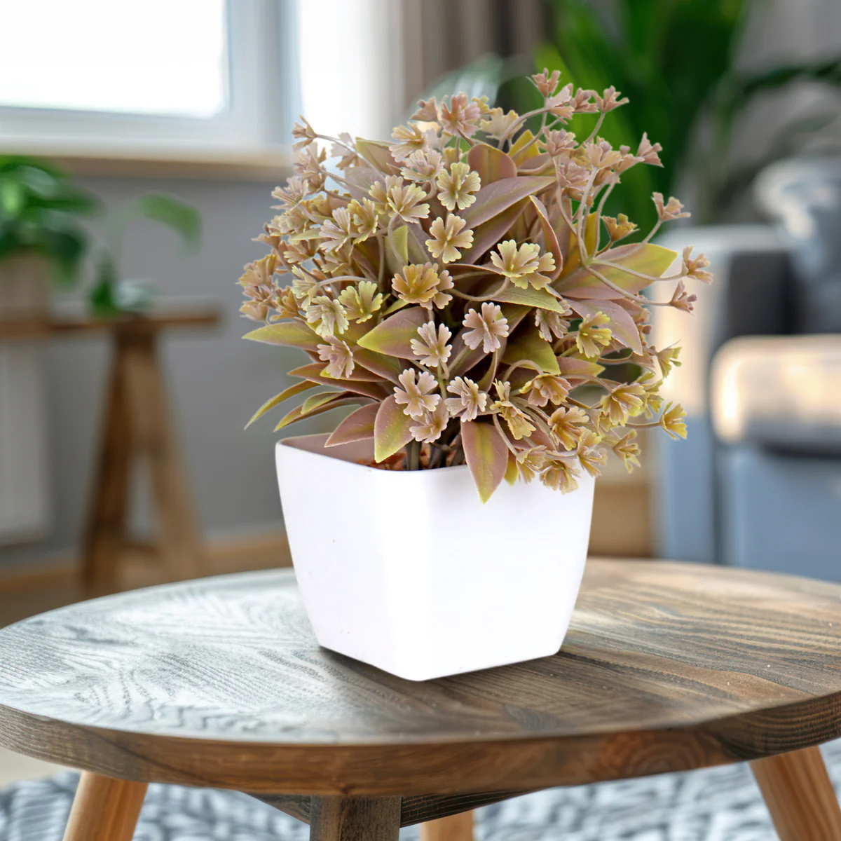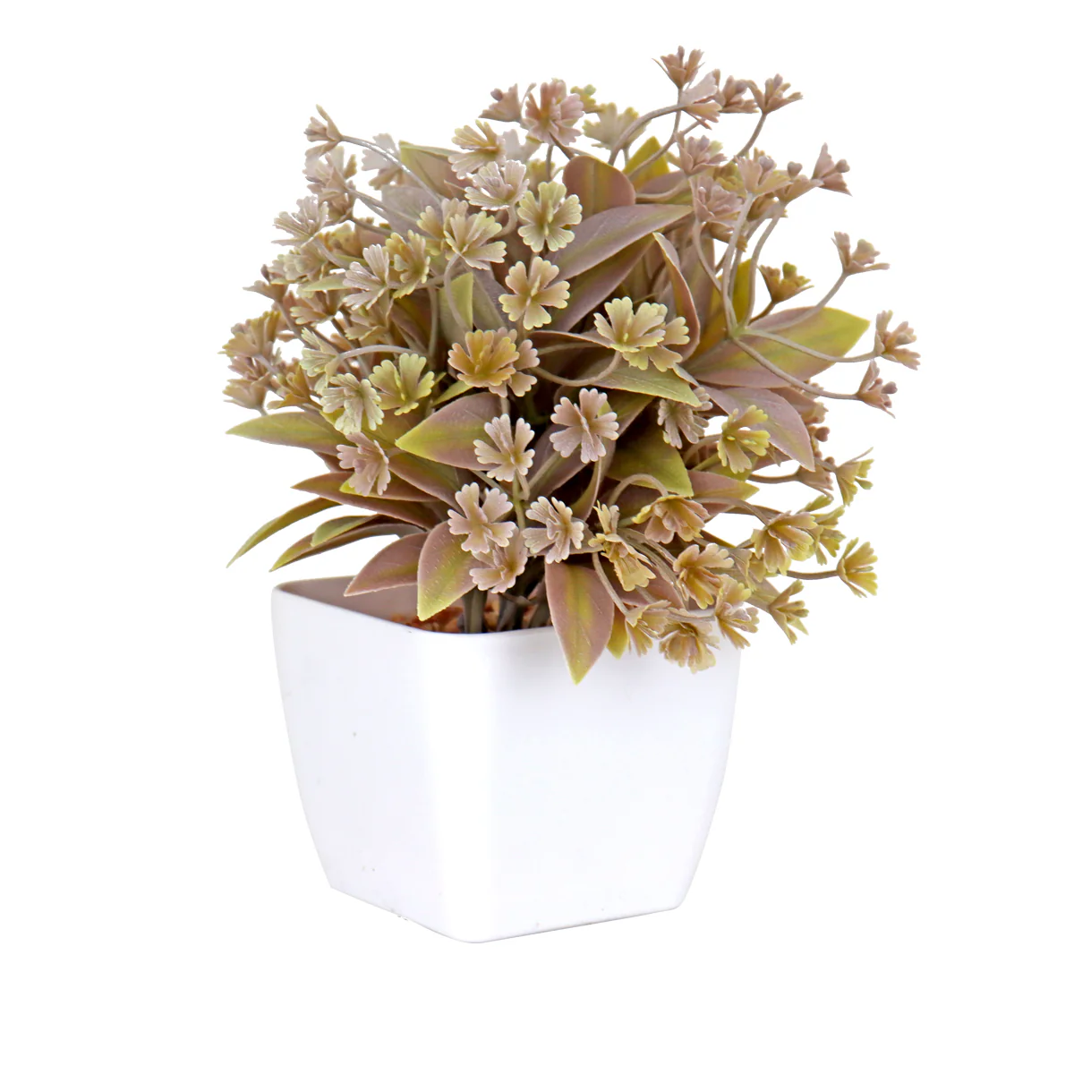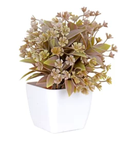 Planta Artificial Decorativa en Maceta, color Verde con Blanco