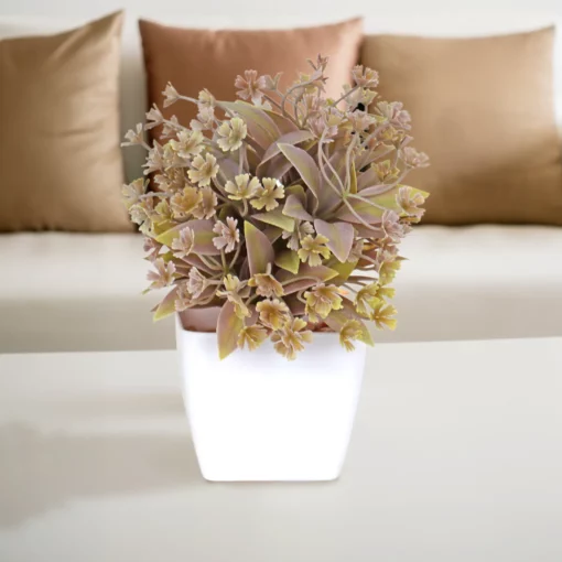 Planta Artificial Decorativa en Maceta, color Verde con Blanco